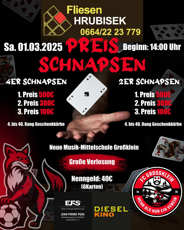 Preisschnapsen des FC Großklein am Samstag, 01.03.2025