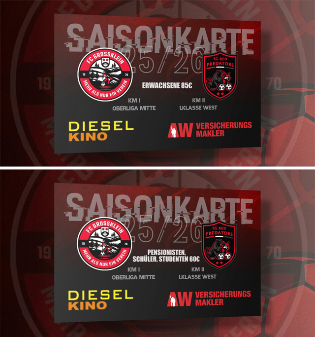 Die neuen Saisonkarten für die Saison 2025/2026 sind ab Juli 2025 bei den Vorstandsmitgliedern des FC Großklein erhältlich!
