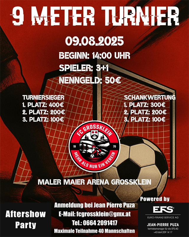 Am 09.08.2025, Beginn 14:00 Uhr in der Maler Maier Arena Großklein.