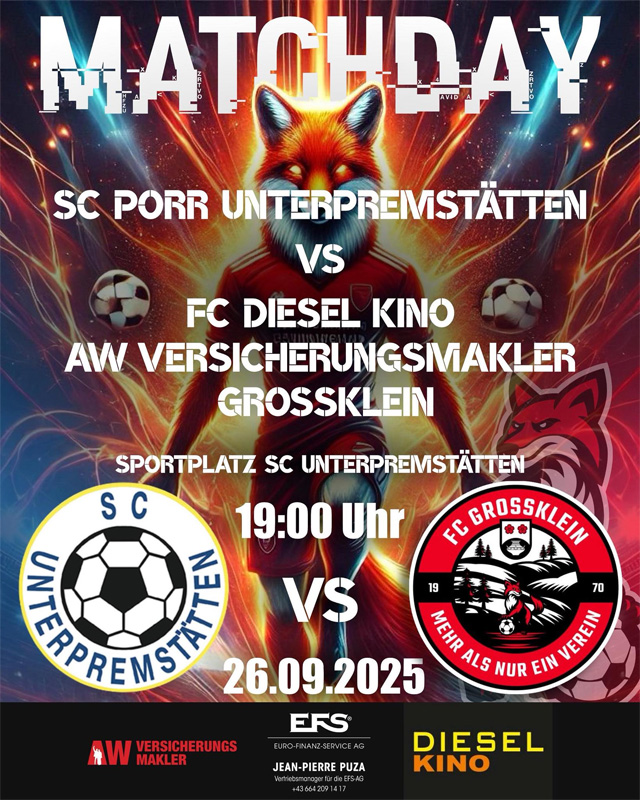 Unsere KM I gastiert am Freitag beim SC Unterpremstätten! 25/09/2025FCG SC Unterpremstätten vs. FC Diesel Kino AW Versicherungsmakler Großklein Freitag, 26.09.2025, 19:00 Uhr in Unterpremstätten Meisterschaftsspiel – 7. Runde – Oberliga Mitte/West Teilen: Klicke, um auf X zu teilen (Wird in neuem Fenster geöffnet) X Klick, um auf Facebook zu teilen (Wird in neuem Fenster geöffnet) Facebook Gefällt mir Wird geladen …
