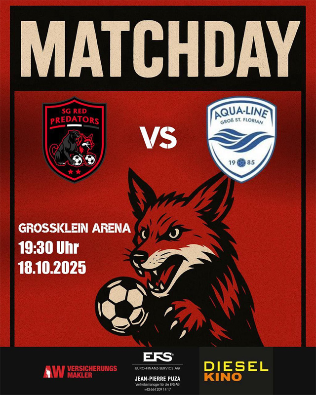 Unsere KM II trifft am Samstag zu Hause auf den SV Frauental/Groß St. Florian 17/10/2025FCG SG Red Predators Großklein II vs. SV Frauental/Groß St. Florian Samstag, 18.10.2025, 19:30 Uhr in der Großklein Arena Meisterschaftsspiel – 10. Runde – 1. Klasse West Teilen: Klicke, um auf X zu teilen (Wird in neuem Fenster geöffnet) X Klick, um auf Facebook zu teilen (Wird in neuem Fenster geöffnet) Facebook Gefällt mir Wird geladen …