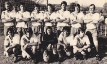 Die erste Meistermannschaft 1975/76: v. li. n. re. stehend: Fritz Trabi, Manfred Ulbing, Walter Kirchleitner, Hubert Edler sen., Peter Zirngast, Helmut Edler, Peter Schlegel; hockend: Hermann Wrumec, Franz Taucher, Fritz Tinnacher, Rudolf Edler, Karl Lenz