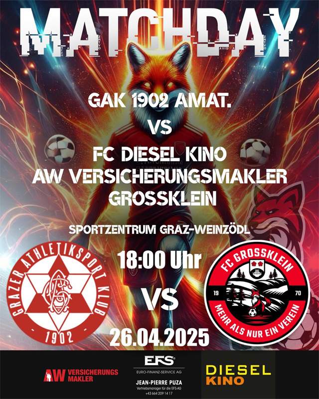 KM I GAK 1902 Amat. vs. FC Großklein, 18:00 Uhr in Graz-Weinzödl