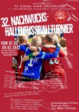 32. Nachwuchshallenfußballturnier des FC Diesel Kino Großklein vom 07.02. bis 09.02.2025 in der Musik-Mittelschule Großklein.